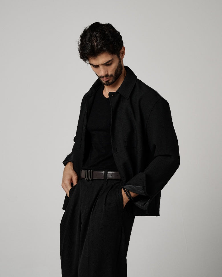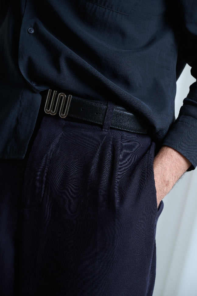 A refined belt in deep matte black smooth leather with architectural precision and editorial sophistication. Infused with Shungite's protective energy—grounding, balance, and refined presence—this piece anchors your silhouette with refined power and understated luxury. Adjustable fit with sculptural silver hardware; the perfect essential for the modern luxury man; a reminder to move through the world with grounded confidence and effortless style