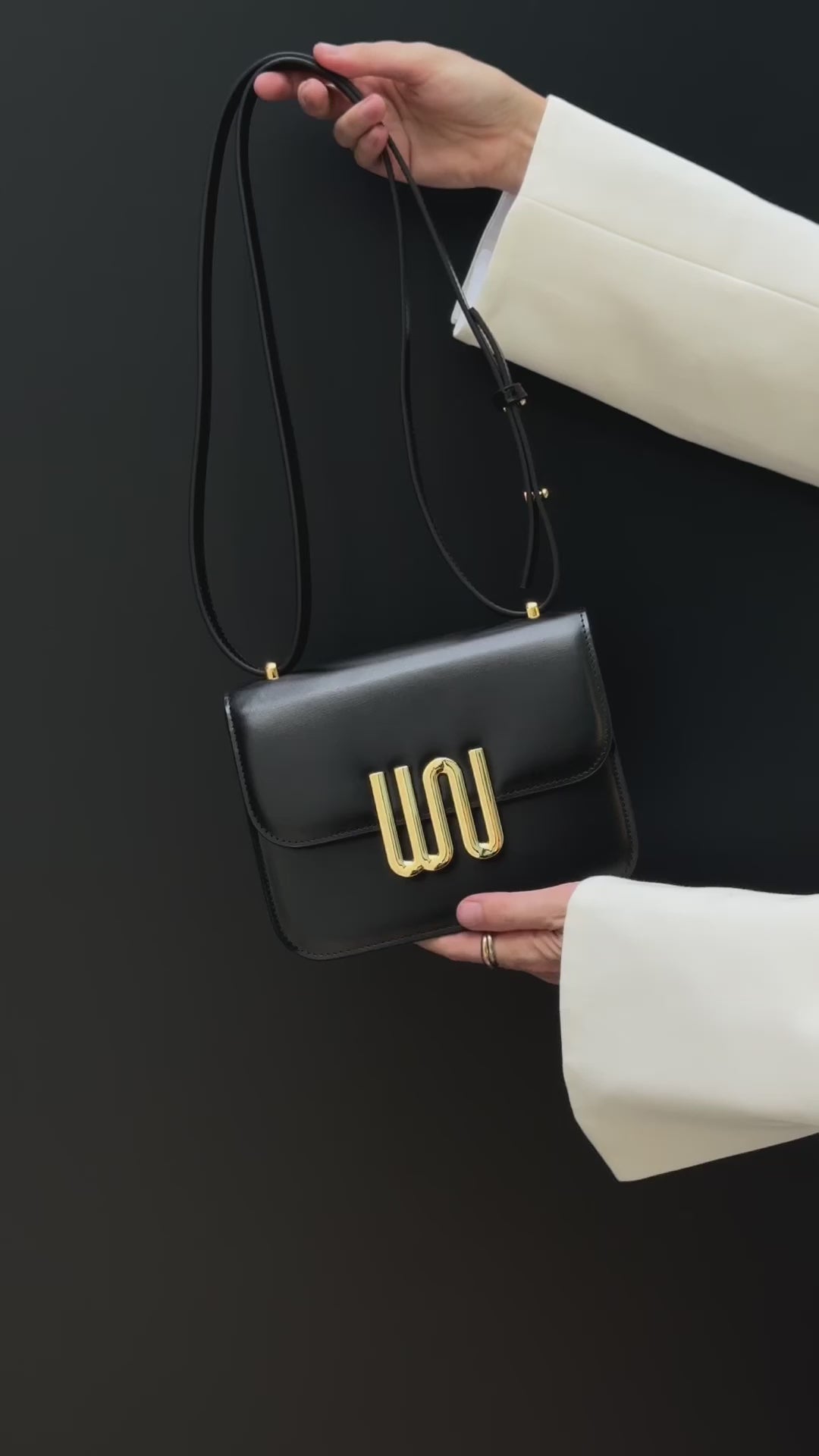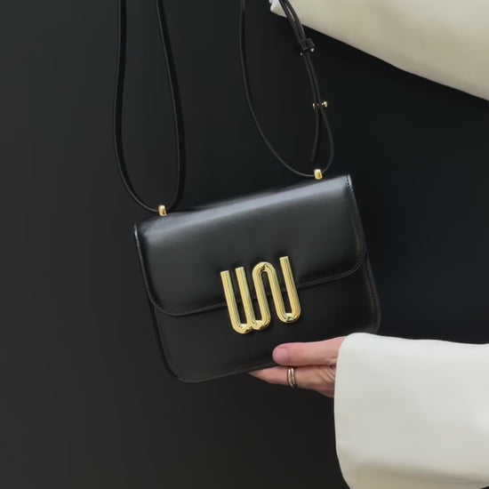 Inspired by Pyrite, the stone of confidence and abundance. Pyrite Noir is a sleek crossbody, crafted in smooth black European calf leather. Accented with sculptural high-shine gold hardware and finished with a structured silhouette, it delivers effortless day-to-night luxury with modern precision.