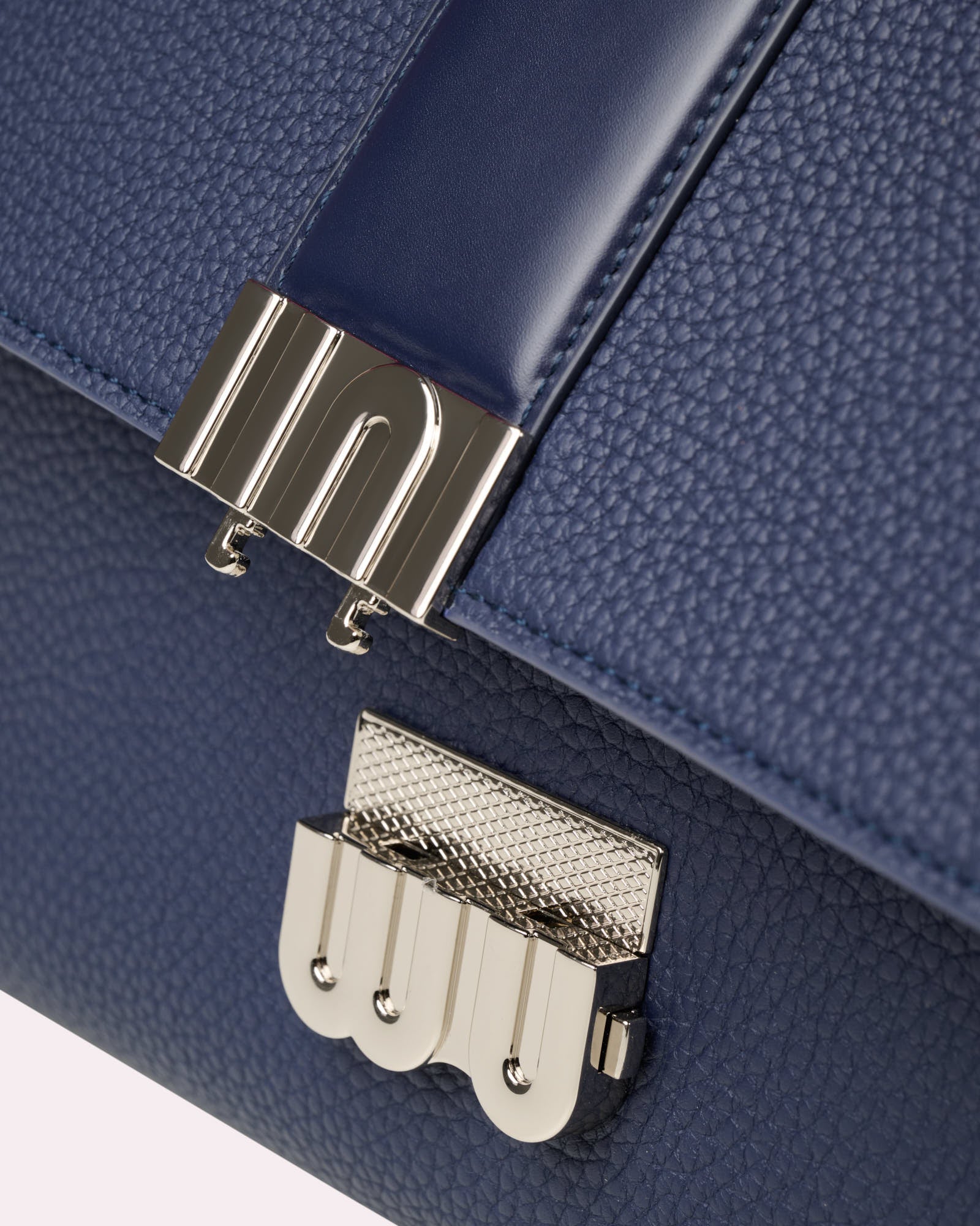 Inspired by the Tygar stone—embodying strength, instinct, and elevated focus—the Tygar Cobalt brings that energy into a striking, modern silhouette. Crafted in vivid cobalt large-grain European leather with a smooth tonal contrast band, it makes a bold, clean statement. High-shine silver hardware sharpens the finish, giving the bag its unmistakably refined edge.