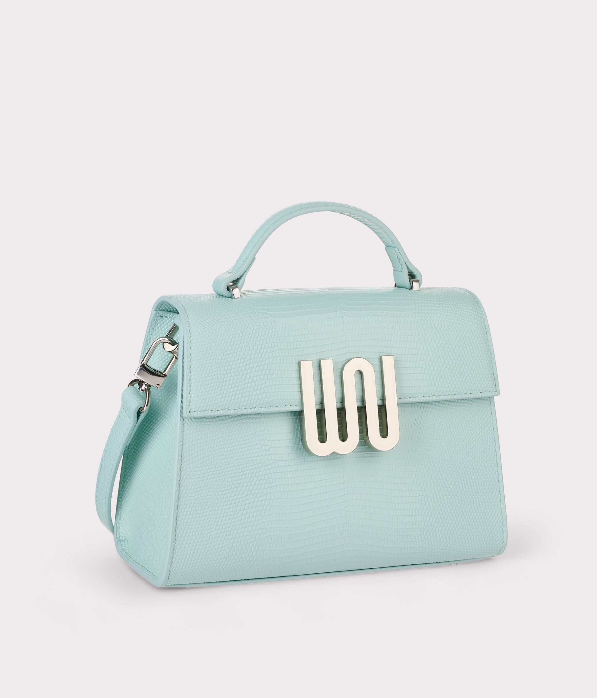 Our Bronzite bag features high-shine lizard leather with silver hardware for a touch of luxury and durability. The microfiber interior, adjustable extra strap for versatile day-to-night use, and protective feet ensure both elegance and functionality. Perfect for those who are looking for sophistication in an exquisite design.